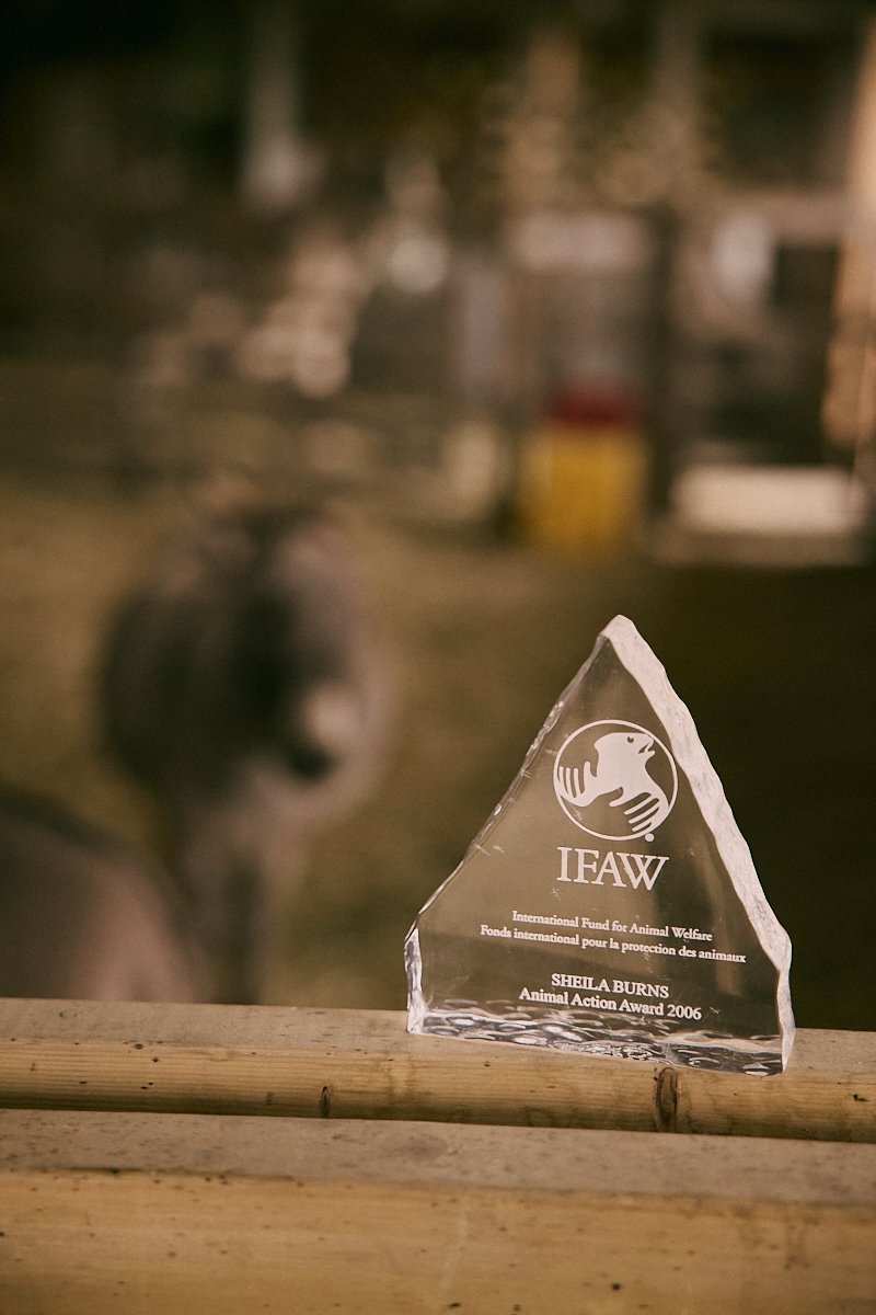 Sheila’s IFAW award, celebrating her devotion to animal welfare. (Katherine Holland, 2025)